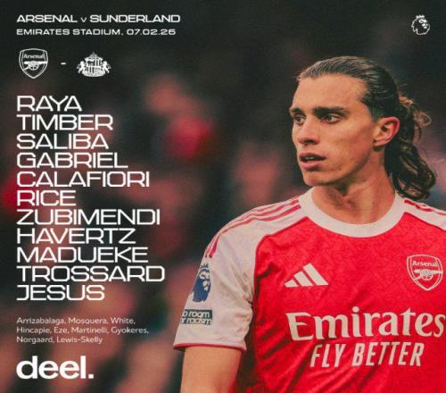 英超第25輪,阿森納主場對陣桑德蘭,賽前阿森納首發(fā)陣容出爐,具體名單如下: 阿森納首發(fā):拉亞 / 廷伯、薩利巴、加布里埃爾、卡拉菲奧里 / 賴斯、蘇維門迪、哈弗茨 / 馬杜埃凱、熱蘇斯、特羅薩爾