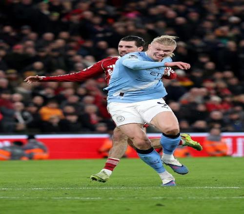 但曼城展現(xiàn)了冠軍球隊的韌性,第84分鐘,哈蘭德頭球擺渡,貝爾納多·席爾瓦鏟射破門,將比分扳為1比1,高潮在補(bǔ)時階段到來,曼城球員努內(nèi)斯在禁區(qū)內(nèi)被利物浦門將阿利松放倒,裁判判罰點球,哈蘭德主罰命中,完成絕殺,并脫衣慶祝領(lǐng)到黃牌。
