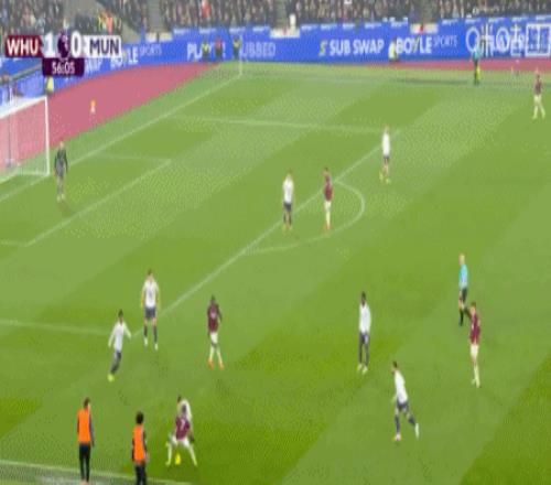 第49分鐘,紹切克門前插上搶點(diǎn)推射破門,西漢姆聯(lián)1-0曼聯(lián)