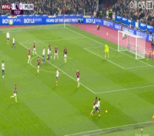 第90+5分鐘,謝什科禁區(qū)腳后跟破門,曼聯(lián)1-1扳平西漢姆聯(lián)