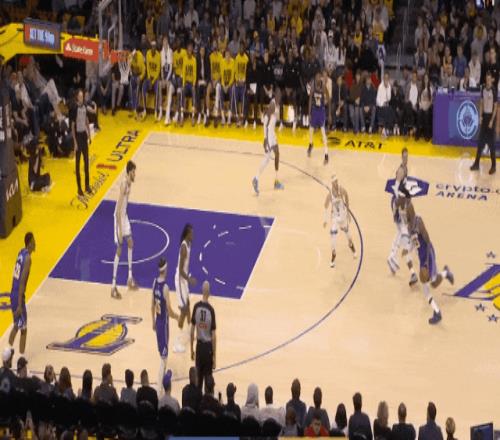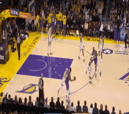 然后是一個切特輪轉(zhuǎn),勒布朗直喂內(nèi)切的八村上籃,切特補位不及。