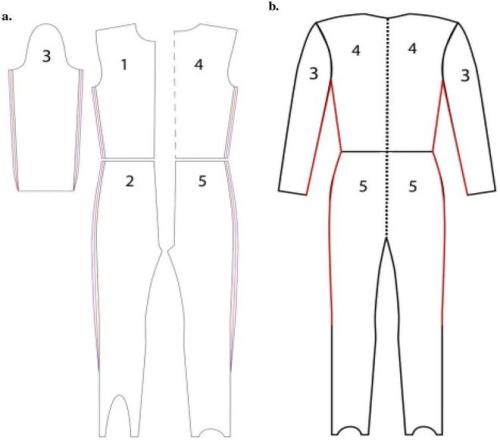 跳臺(tái)滑雪服的構(gòu)造示意圖。比賽服的尺寸有非常嚴(yán)格的規(guī)定,比如說在任何部位衣服的周長(zhǎng)都只能比身體周長(zhǎng)多4厘米以內(nèi)。| Mikko Virmavirta et al.