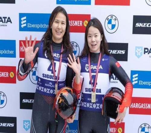 古麗潔乃提·阿迪克尤木(左)/趙佳穎在第十四屆全國冬季運(yùn)動會上摘得女子雙人雪橇冠軍。
