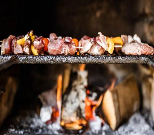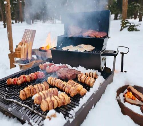 當(dāng)?shù)夭蛷d的招牌菜多是炭烤野豬肉,選用當(dāng)?shù)厣搅种械囊柏i肉,經(jīng)過腌制后用炭火慢烤,外皮焦脆,肉質(zhì)鮮嫩多汁,帶著淡淡的煙熏味,搭配特制的醬料和新鮮的蔬菜,口感豐富,回味無窮。再配上一杯特倫蒂諾紅酒,這款來自意大利北部產(chǎn)區(qū)的紅酒,酒體飽滿,單寧柔和,果香濃郁,與野豬肉的風(fēng)味完美契合坐在露臺的長椅上,眼前是五塔山的絕美全景,雪花偶爾落在肩頭,耳邊是木屋傳來的歡聲笑語,那種人與自然融為一體的愜意,讓人忘卻了時間的流逝。