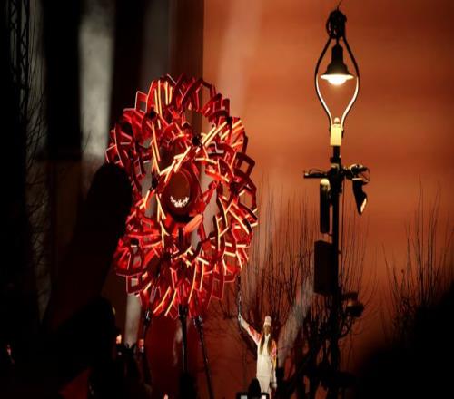 意大利冬奧會開幕式上,一直出現(xiàn)橙+黑/棕這組配色。▼