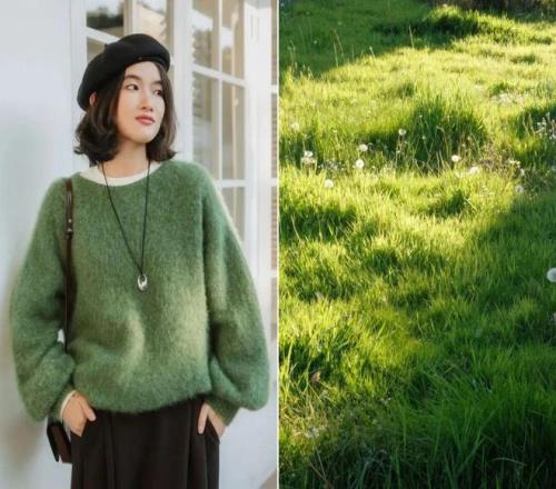 比如,大面積綠毛衣+紅耳環(huán)/項鏈。▼