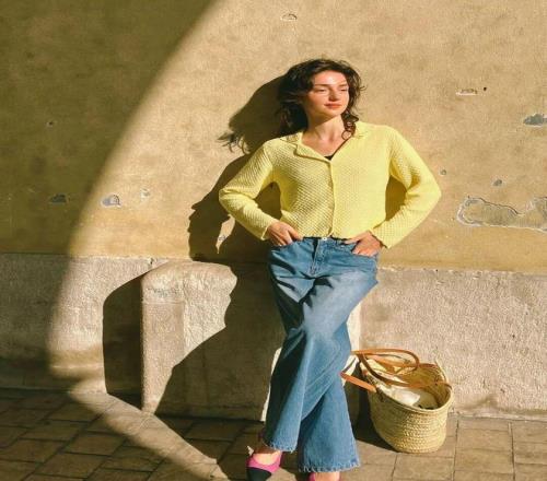 博主charlotte.vandaele的黃色馬甲+藍色襯衫▼