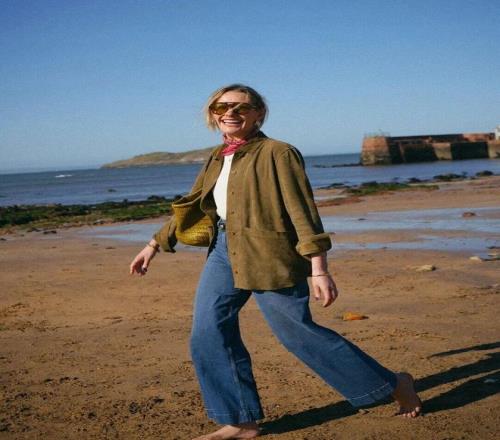 或者用這兩年很火的Barbour油蠟皮谷倉夾克,搭配紅色針織,形成“一剛一柔”的對比。▼