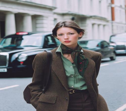 如果想要更低調(diào)/更好駕馭的組合,可以試試橙色絲巾,搭配棕色皮革小單品,比如皮手表、皮包。