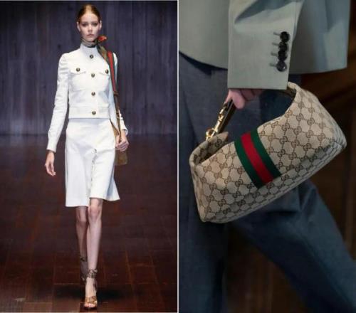 2015年(左)和2026年(右)春夏大秀的紅綠織帶元素,很容易讓人聯(lián)想起品牌的意大利基因。▼