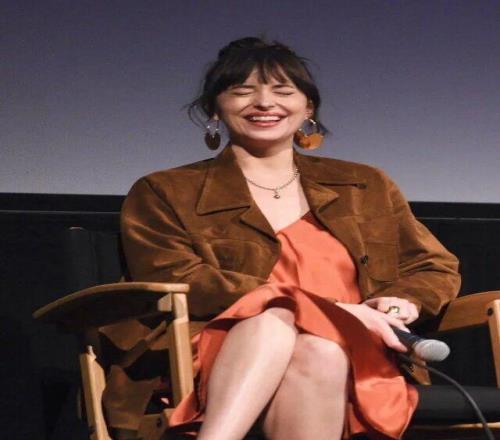 達妹也穿過類似的搭配:棕色麂皮外套+橙色緞面連衣裙,明媚得讓人眼前一亮。▼