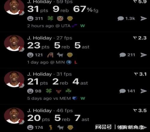 霍樂迪此役表現堪稱完美,上半場穩(wěn)定軍心,下半場關鍵時刻又掀起進攻高潮,全場最佳實至名歸。他全場15投10中,三分球8投4中,高效拿下31分,并貢獻9個籃板與7次助攻。這31分不僅刷新了他開拓者生涯的得分紀錄,更是他自2023-2024賽季及2024-2025賽季以來,單場得分首次突破30分大關,仿佛讓人看到了他當年在綠軍黑白雙煞時期,攻防一體的風采。