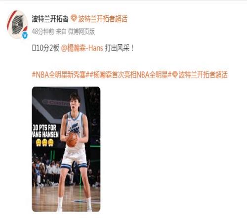 北京時(shí)間2月14日,楊瀚森的首次NBA全明星周末之旅,他8分鐘5中4得到10分2籃板,雖然無(wú)緣晉級(jí)全明星新秀賽決賽,但表現(xiàn)已經(jīng)足夠出色,開(kāi)拓者官方也是稱贊“打出風(fēng)采”。楊瀚森賽后回應(yīng)最喜歡自己的那記外線三分,自嘲自己的中式英語(yǔ)讓大家很開(kāi)心,還表示最喜歡的全明星部分是與偶像約基奇聊天,甚至是等不及要親約基奇。
