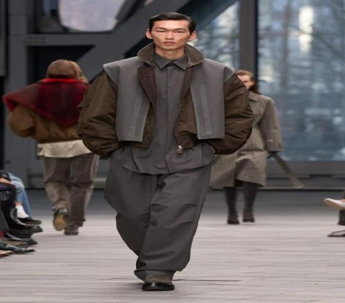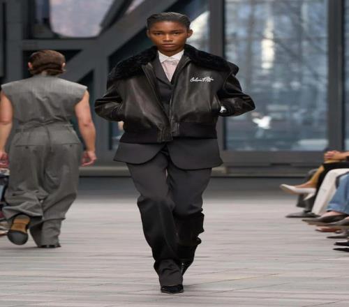 本季的設(shè)計(jì)中,Leoni 借鑒了品牌 20 世紀(jì) 70 年代 的經(jīng)典元素,將現(xiàn)代的精致剪裁與極簡(jiǎn)幾何相結(jié)合。性感的西裝凸顯女性身材的曲線,放大版的毛領(lǐng)則突顯奢華感。而她對(duì)于「減法美學(xué)」的推崇,使得整個(gè)系列的輪廓更加銳利、簡(jiǎn)潔。1976 年檔案中的牛仔元素,被重新帶回 Calvin Klein 的 T 臺(tái),長字母刺繡的飛行員夾克引人注目,呼應(yīng)了 Brooke Shields 代言的爭(zhēng)議牛仔廣告。