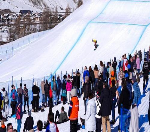 利維尼奧的雪道在陽光下泛著冷光,雪面被一趟趟滑行刻出清晰的軌跡。這座山谷小鎮(zhèn)的兩側(cè),阿爾卑斯山脈輪廓分明。