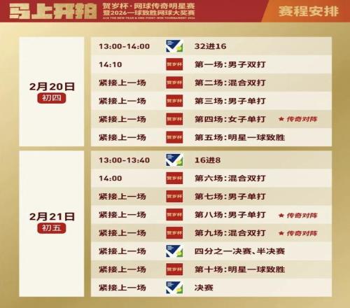 附:賀歲杯·網(wǎng)球傳奇明星賽暨2026一球致勝網(wǎng)球大獎賽觀賽攻略